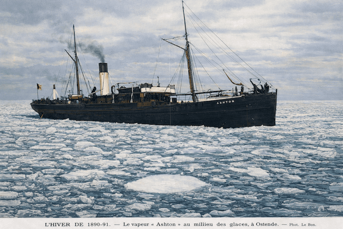 Le vapeur anglais Ashton pris dans les glaces au large d'Ostende en Belgique, en janvier 1891