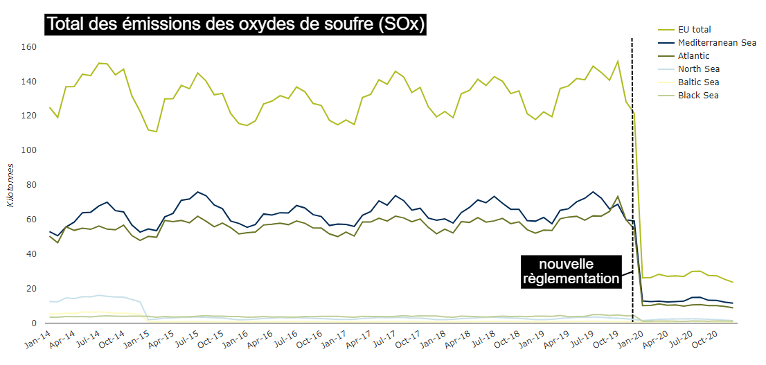 Au 1er janvier 2020, de nouvelles réglementations sont entrées en vigueur, visant à réduire drastiquement la pollution au soufre causée par le trafic maritime. La baisse des émissions fut brutale sur tous les bassins du monde. Les rejets d'oxydes de soufre ont chuté de plus de 80% ! Une bonne nouvelle pour l'environnement et la qualité de l'air. Sauf qu'il pourrait y avoir un revers de médaille. En effet, les oxydes de soufre agissent comme des aérosols réfléchissant une partie de la lumière du soleil. Avec 80% de soufre en moins dans l'atmosphère, il y a donc plus d'énergie solaire atteignant les basses couches de l'atmosphère, pouvant induire un réchauffement.