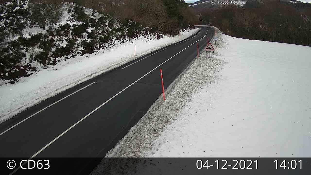 Webcam de la D149 près de Super-Besse montrant une neige lessivée par les pluies de ces dernières heures – Via Puy-de-Dome.fr