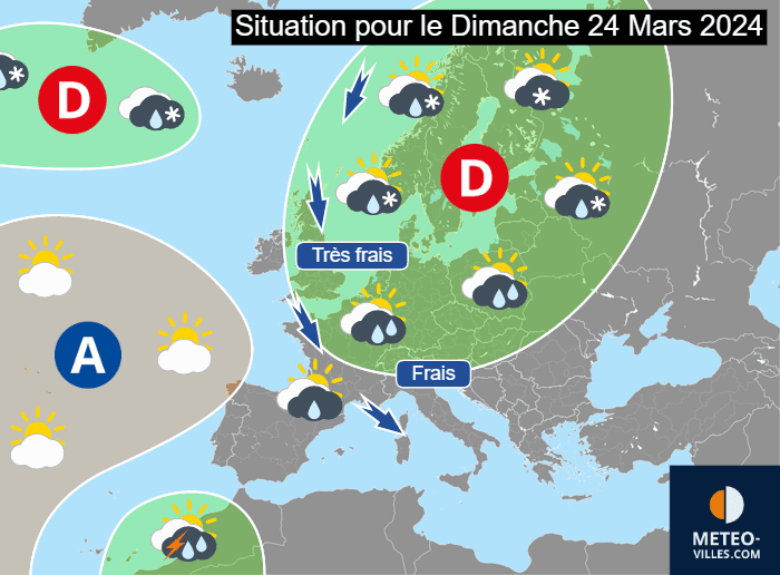 Situation météo à échelle européenne pour le dimanche 24 mars 2024 - Météo Villes
