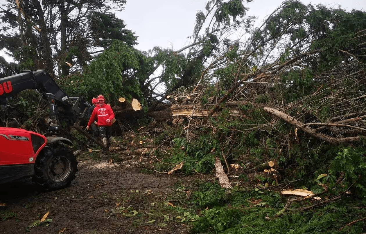 Route barrée par les chutes d'arbres sur l'Île-de-Bréhat (22) ce jeudi 2 novembre 2023 – photo Ouest-France