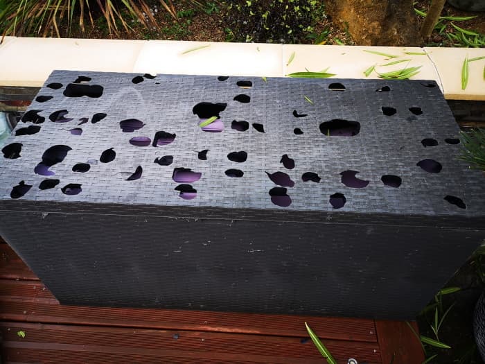 De virulents orages de grêle ont également affecté le département des Landes. Sur la commune de Classun dans l'est du département, des grêlons de même dimension ont été observés en fin d'après-midi. Ils ont causé des dégâts notables sur la végétation mais aussi sur le mobilier de jardin, comme l'illustre la photo ci-dessous.
