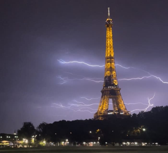 Éclairs dans le ciel de Paris en soir du dimanche 15 mai 2022 - photo @Lauragrt8 sur twitter