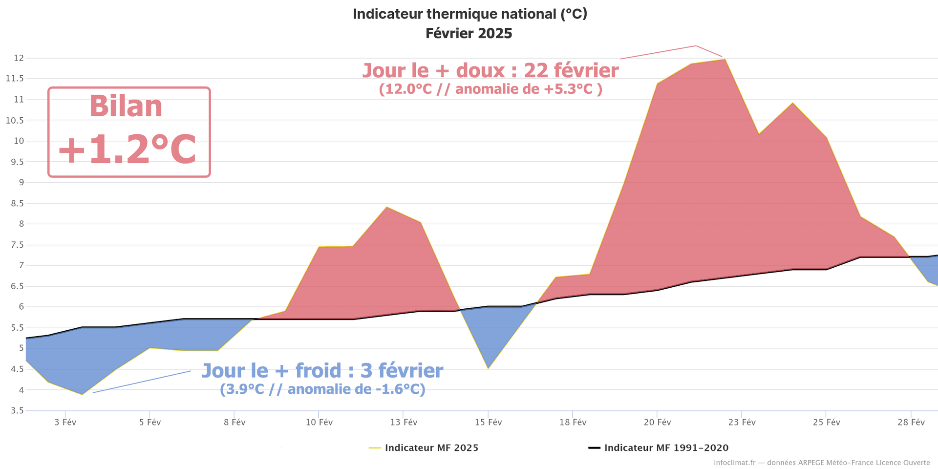 Indicateur thermique national pour février 2025 depuis l'après-guerre (1946) - Infoclimat