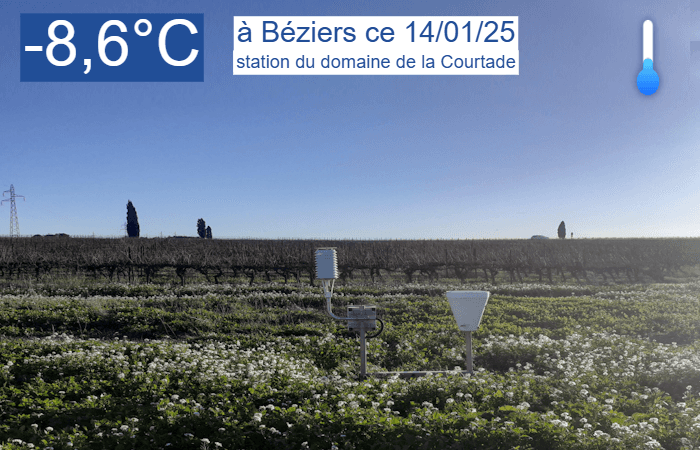 -8,6°C mesurés à Béziers-Courtade (34) ce mardi 14 janvier 2025 - Météo France