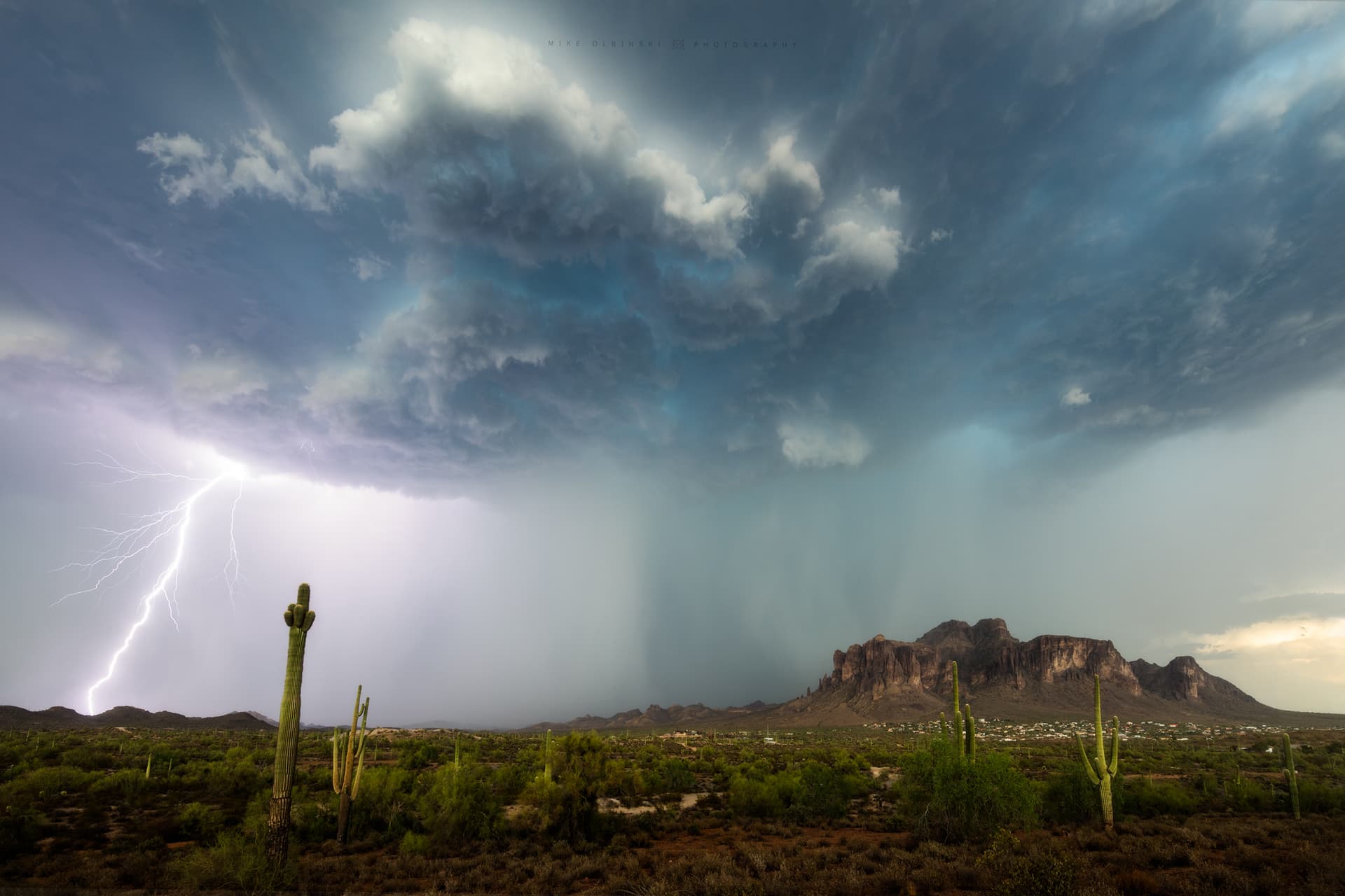 Violent orage au-dessus des Superstition Mountains (Arizona) le 16 juillet dernier – Mike Olbinsky