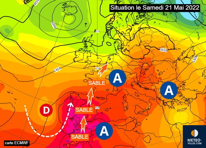 Situation à échelle continentale ce samedi 21 mai 2022 - carte ECMWF