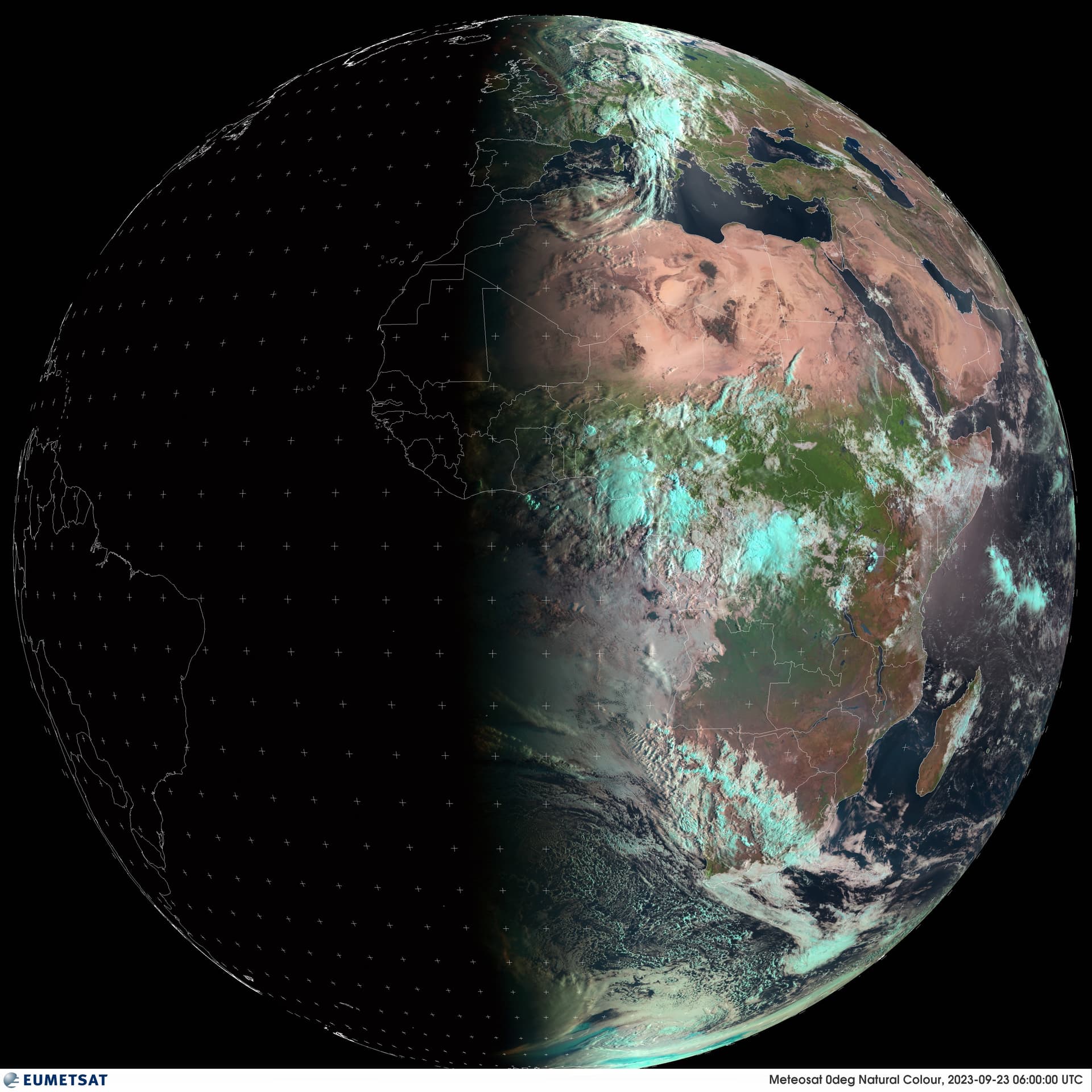 Image satellite Meteosat lors de l'équinoxe d'automne - 23 septembre 2023 à 08h heure Française - Eumetsat