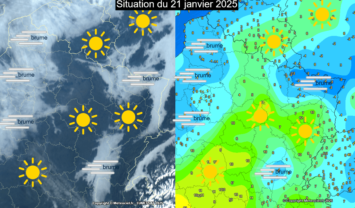 Le 21 janvier 2025 fut une journée typique de ce phénomène avec des variations de température et de temps sensible très importante avec du givre et des chutes de neige industrielle juxtaposant des conditions printanières et ensoleillées.