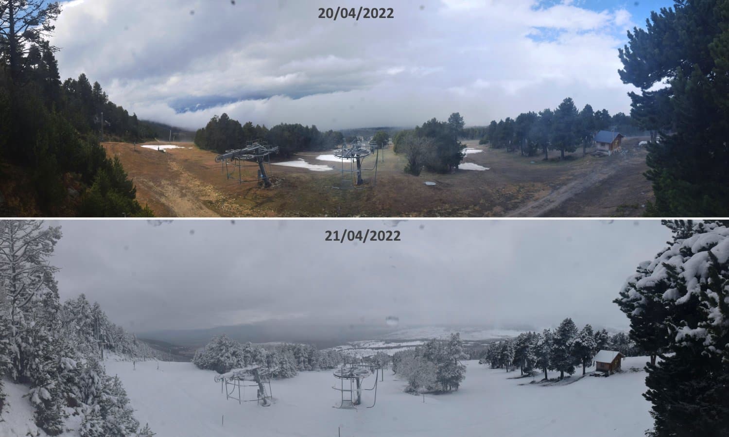 Neige dans la station de Cambre d'Aze (Pyrénées-Orientales) - comparaison 20 et 21 avril 2022 - Skaping