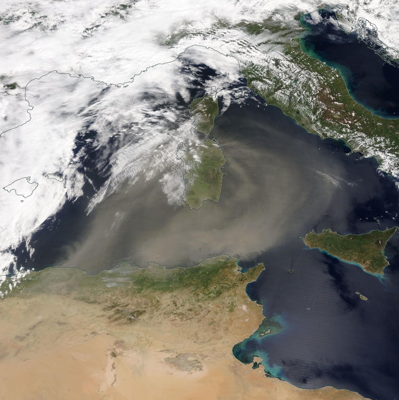 Cette agitation a été causée par deux dépressions circulant entre la Péninsule Ibérique et l'Ouest du bassin Méditerranéen ces derniers jours. A l'avant de l'une de ces dépressions, un vigoureux flux de Sud a provoqué une importante remontée de sable du Sahara ces 22 et 23 avril autour de l'Italie ainsi que de la Corse. Une situation qui se répète indéniablement en cette année 2022 !