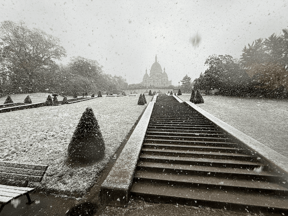 Saupoudrage de neige à Montmartre (avant des chutes de neige plus conséquentes en fin de journée) – Photo : Mathieu Milot