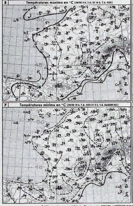 Températures minimales et maximales du 1er février 1954 - document copyright © Meteo-Villes