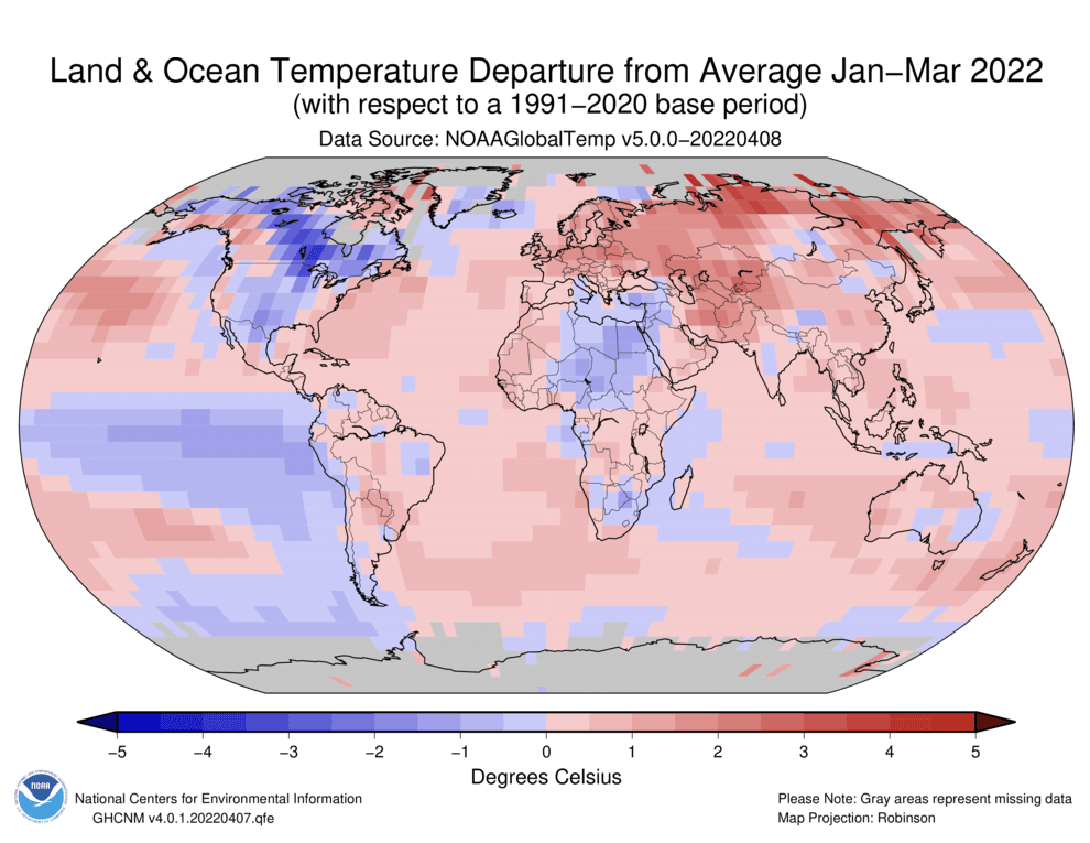 Le 1er trimestre 2022 au 5e rang des plus chauds dans le Monde depuis 1880