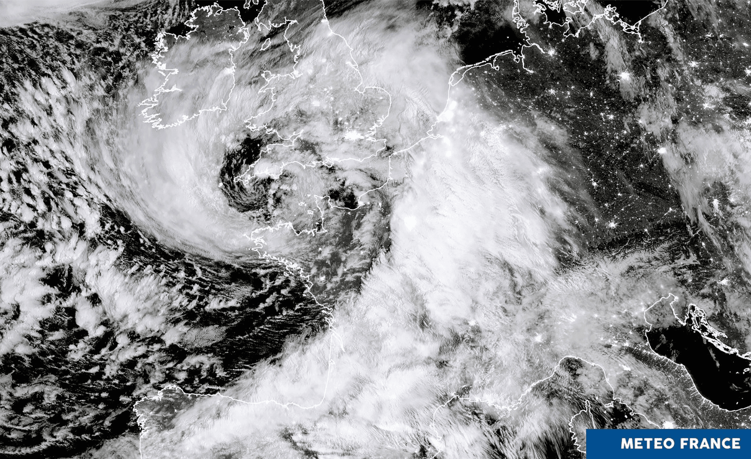 Image satellite de la tempête Ciaran le jeudi 2 novembre 2023 à 03h - via Météo France