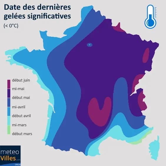 Date des dernières gelées en France - Météo Villes