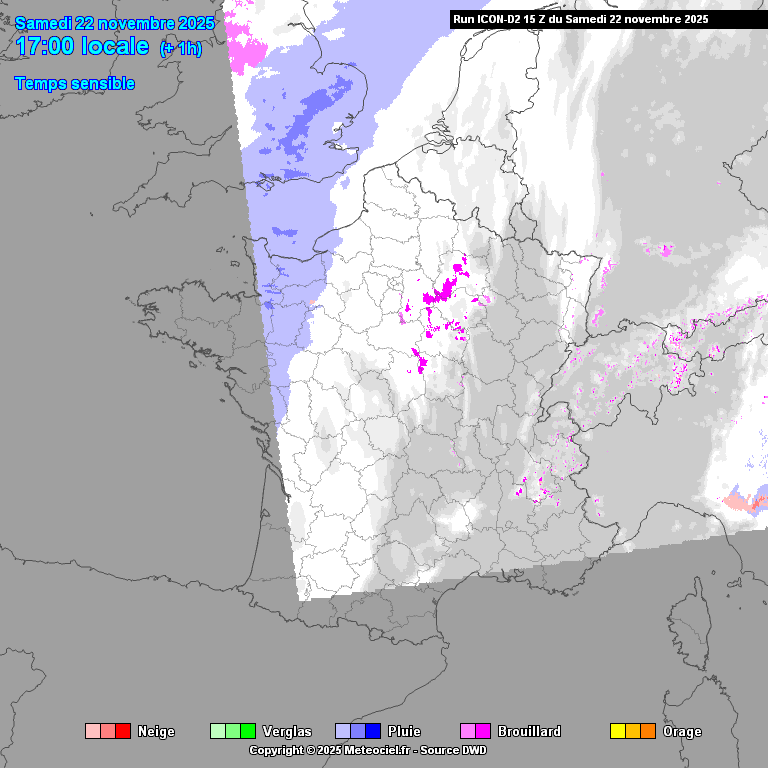 Après minuit et jusqu’en fin de nuit, les chutes de neige s’étendront à l’orléanais, à la Champagne, à une partie de la Bourgogne et au Massif central où des inversions de température pourraient entraîner des pluies verglaçantes. De plus, il n’est pas exclu qu’un épisode de pluies verglaçantes touche également une partie des régions du nord-est, ainsi que la Bourgogne et éventuellement le Centre.