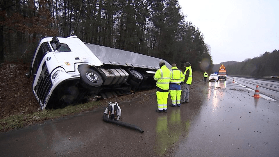 Camion renversé à cause du verglas sur la RN57 (Vosges) ce mercredi 17 janvier 2024 - via VosgesTV