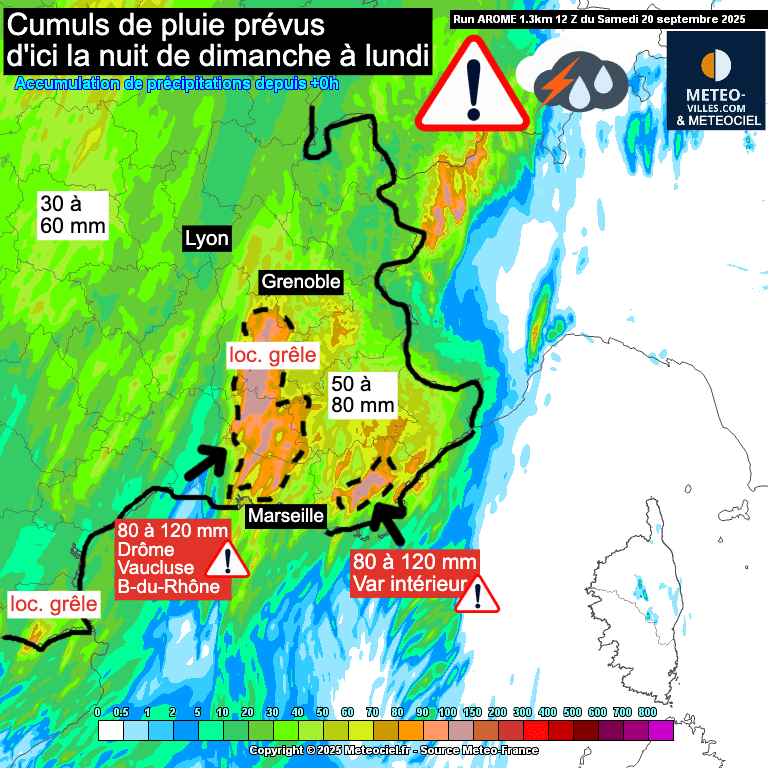 C'est donc sur le sud-est que les orages les plus actifs sont attendus, notamment aux abords de la Méditerranée où l'instabilité sera plus importante. Ceux-ci pourront apporter des cumuls importants s'accompagnant donc d'un risque d'inondations locales, des chutes de grêle et des rafales de vent soudaines. Le risque d'orages forts concernera surtout les abords de la Méditerranée la nuit suivante.