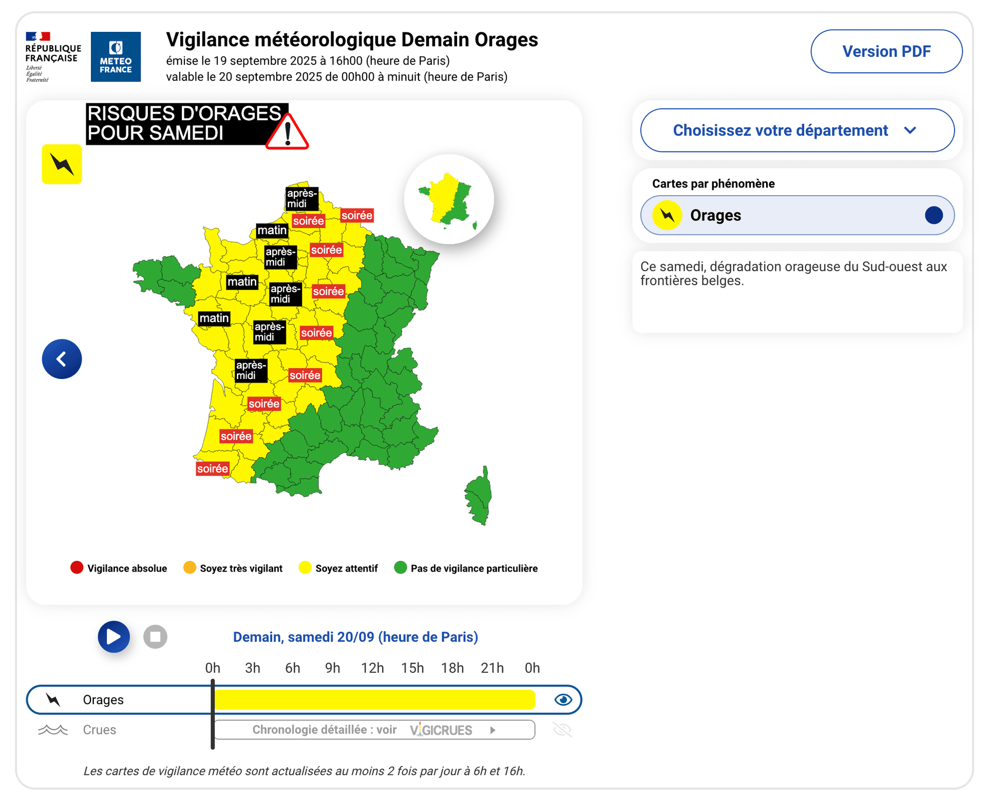 Risque orageux pour le samedi 20 septembre 2025 – Météo-Villes