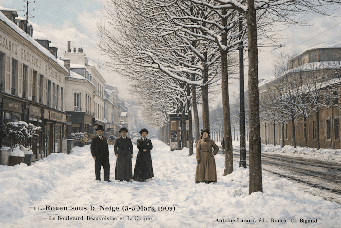 Épaisse couche de neige à Rouen (76) début mars 1909Chronique Météo Villes