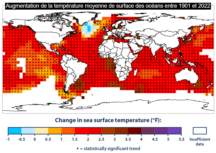 Augmentation de la température moyenne de surface des océans entre 1901 et 2022 - epa.gov