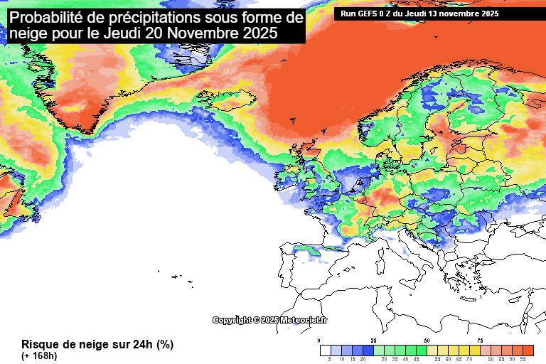 Probabilité de précipitations sous forme de neige le jeudi 20 novembre 2025 - meteociel.fr
