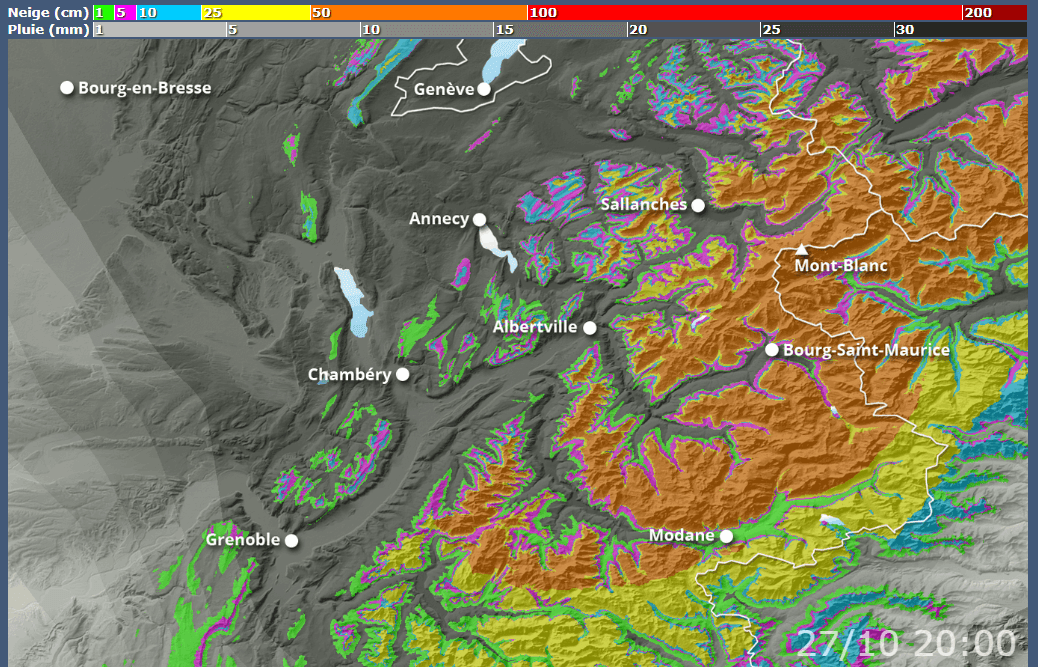 Cumuls de neige du samedi 25 au lundi 27 octobre 2025 sur le nord des Alpes - skipass