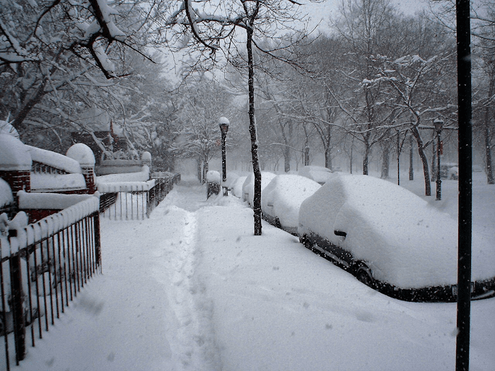 New York sous le blizzard lors de la tempête du 12 février 2006, apportant 68 cm ! - photo Wikipedia