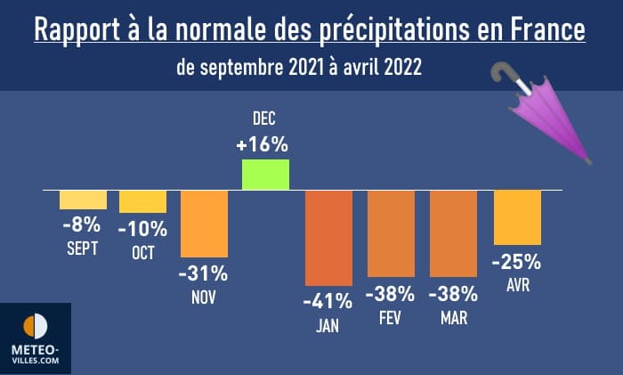 Rapport à la normale des précipitations en France de septembre 2021 à avril 2022 - Météo Villes
