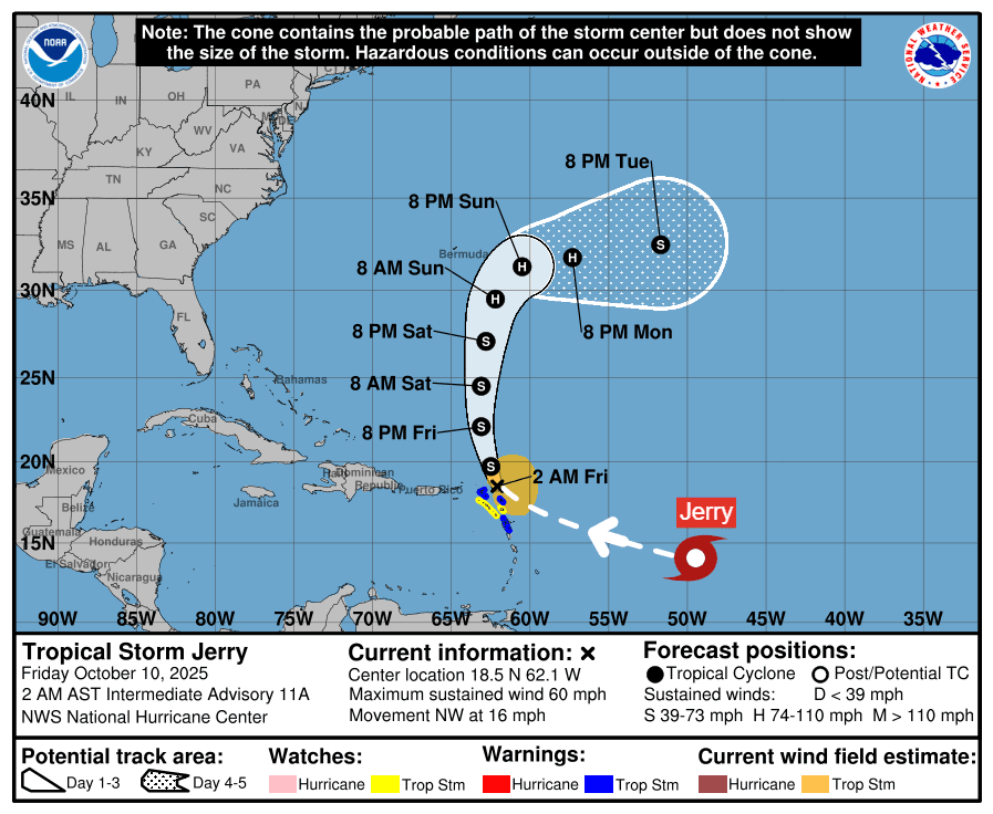 Trajectoire de la tempête tropicale Jerry en cette fin de semaine – National Hurricane Center