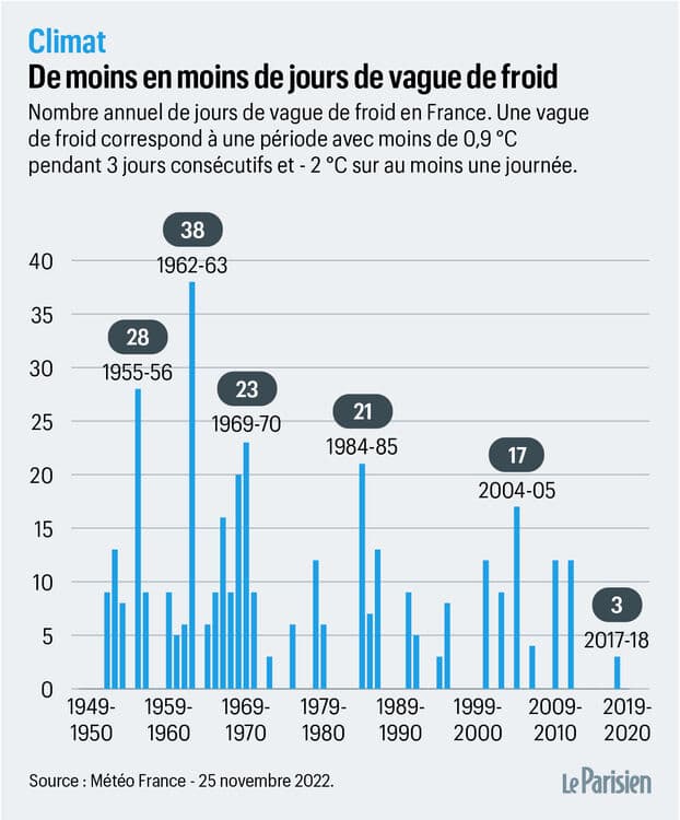 Évolution du nombre de vagues de froid hivernales en France entre 1950 et 2022 – La Parisien