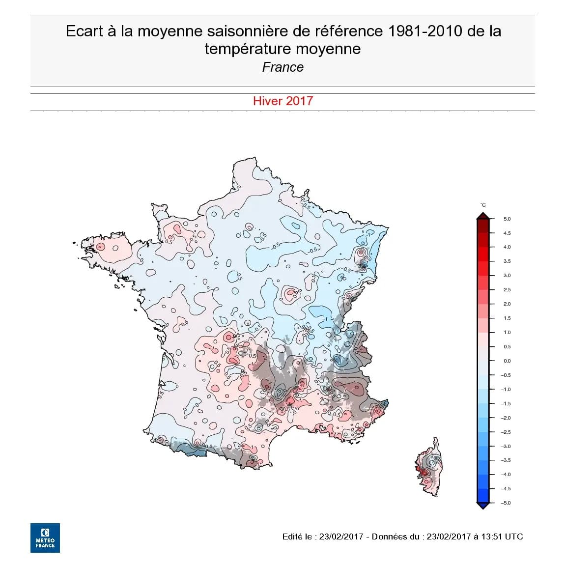 Écarts de températures sur la France par rapport aux moyennes 1981-2010 - Météo-France