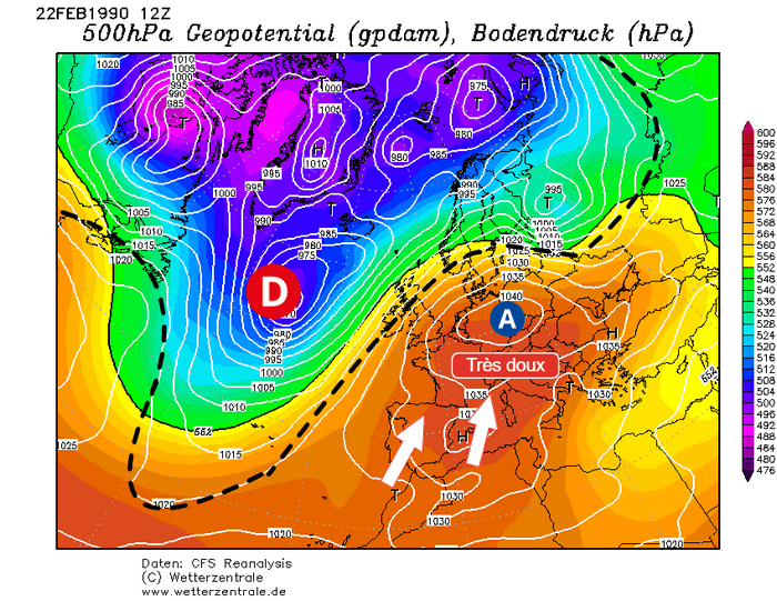Situation atmosphérique du 22 février 1990 sur l'Europe – Wetterzentrale