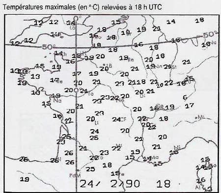 Températures maximales relevées sur la France le 24 février 1990 – archive Météo-Villes