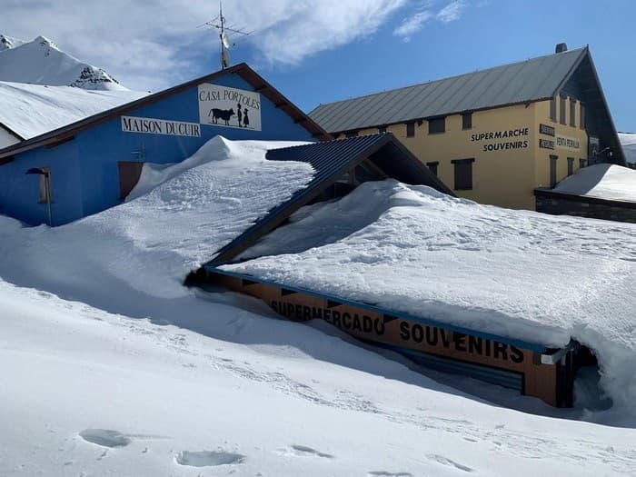 La couche de neige dépasse les 250cm en haute montagne dans les Pyrénées en cette fin de semaine comme ici au col du Portalet - Via Twitter @CyNPirineos