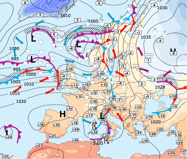 + Jeudi, un front froid peu actif traversera la France d’ouest en est et les températures baisseront.