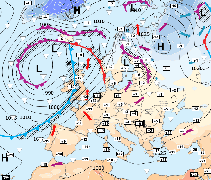 + Ce courant jet naitra d'un conflit entre de l'air très froid d'altitude au Nord de l'Europe et de l'air très doux d'altitude au Sud).
