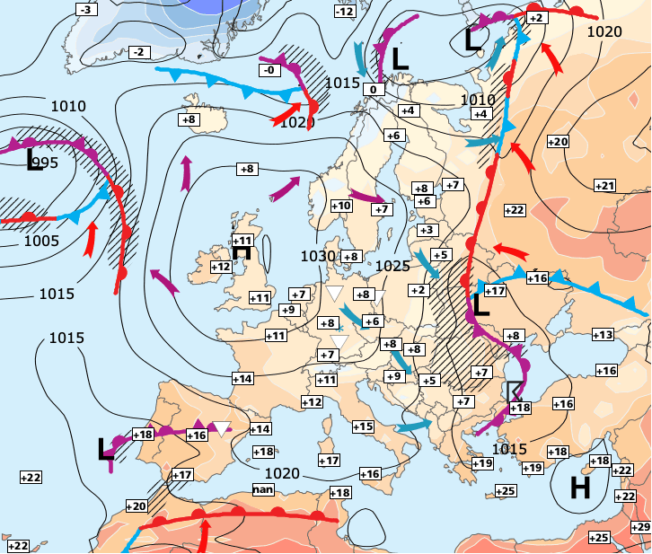 + Même si l’anticyclone se maintient, la situation météo est en train d’évoluer par le nord avec l’arrivée d’une petite goutte froide d’altitude.