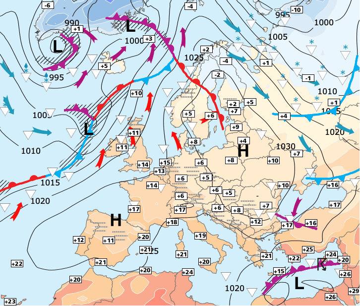 + Dans les prochains jours (et même probablement les prochaines semaines), les anticyclones dits "subtropicaux" se relayeront et mettront la France à l'écart des zones agitées, maintenant des températures élevées (notamment lorsque le centre de ces hautes pressions sera situé sur l'Europe centrale).