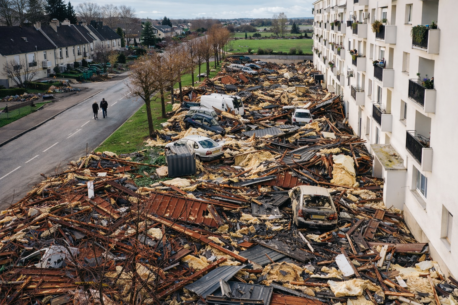 Une cité HLM du Calvados dont le toît s'est écrasé sur le parking…
